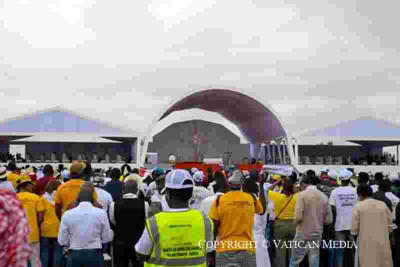 E fuori dalla Cattedrale il papa ha invitato tutti ad essere operatori di pace: “Miei cari fratelli e sorelle, oggi il Signore ha scelto tutti noi per essere operai che portano la pace in questa terra! Diciamo tutti una preghiera al Signore, che la pace regnerà veramente in mezzo a noi, che mentre liberiamo queste colombe bianche, simbolo di pace, che la pace di Dio sarà su tutti noi, su questa terra, e ci terrà tutti uniti nella sua pace. Lodate il Signore!”